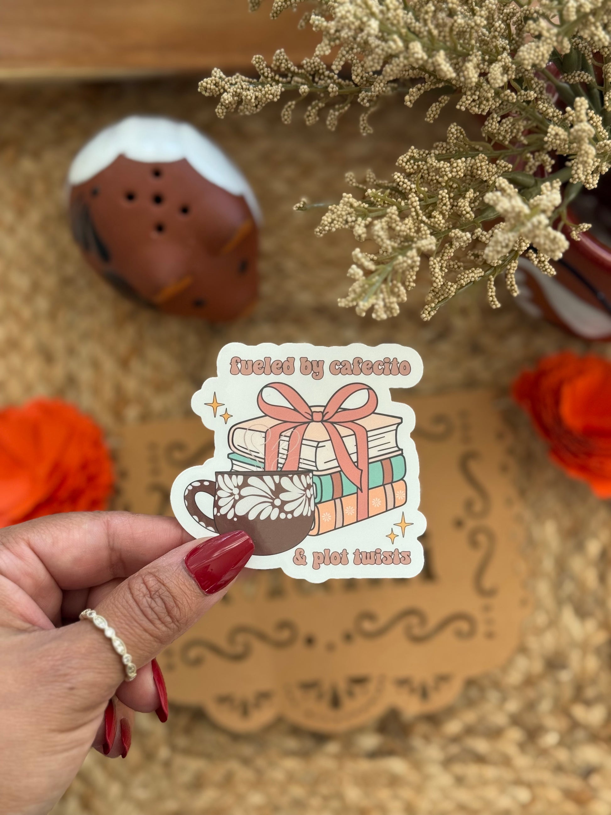 Every bookworm knows the secret ingredients to the perfect reading session: a warm cafecito and a shocking plot twist. This cute and cozy sticker is designed for coffee lovers and readers who can’t resist one more chapter.